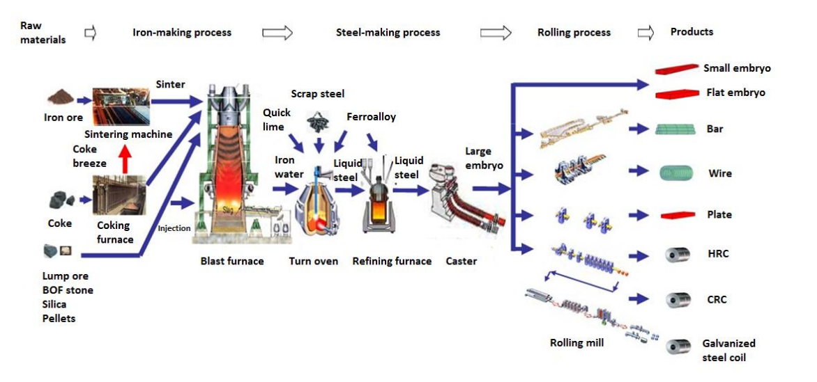 Từ quặng sắt với thành phần chính là sắt ôxyt Fe2O3, Fe3O4, người ta luyện trong lò cao được gang là hợp kim Fe và C trong đó lượng C chiếm hơn 1.7%. Qua lò luyện thép để khử bớt C trong gang, người ta được thép.